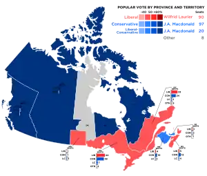 Fue la primera elección de Wilfrid Laurier como líder de los liberales. Aunque perdió la elección, aumentó el apoyo de los liberales. Volvió en 1896 a ganar una sólida mayoría, a pesar de perder el voto popular.