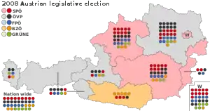 Las vigesimocuartas elecciones generales de Austria se llevaron a cabo en el año 2008, tan solo 2 años después de las anteriores elecciones. Esto se debió a una disputas internas entre la coalición de Populares y Socialdemócratas, lo que finalmente desembocó en unas elecciones anticipadas.