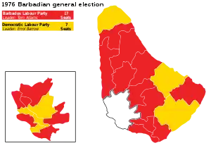 El Partido Democrático Laborista, encabezado por Errol Barrow, gobernaba Barbados desde poco antes de su independencia, con su victoria en las elecciones de 1961, 1966 y 1971, estas últimas las primeras en las que se empleó el sistema de escrutinio mayoritario uninominal puro, con el país dividido en circunscripciones de un solo miembro, en lugar del sistema plurinominal parroquial heredado del gobierno colonial. El gobierno de Barrow integró a Barbados en la OEA, la ONU, y la recién fundada CARICOM.[5] Asimismo, su gobierno fue elogiado por la realización de políticas destinadas a fortalecer a la clase trabajadora y consolidar un estado soberano moderno. Sin embargo, fue criticado por un elevado índice de inflación y desempleo, así como por escándalos de corrupción durante la última etapa del gobierno. El año 1976 vio al partido oficialista perder una elección parcial en dos circunscripciones, y las propuestas de Barrow de una reforma constitucional que modificara el sistema de selección de los jueces le valió la oposición de numerosos sectores institucionales.[5]