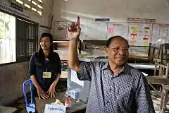 Una de las principales controversias desatadas durante el período electoral fue la tinta indeleble que se utilizaba para marcar las huellas dactilares de los votantes que ya habían emitido su voto.[16] La tinta previamente había sido donado por la Embajada de la India en Camboya. Documentación por los monitores de votación antes de la elección demostró que la tinta podría simplemente ser lavada usando lejía o jugo de lima en pocos minutos tras el secado.[15] La tinta utilizada quizá podría haber permitido a los votantes a votar más de una vez.[16]