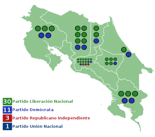 José Figueres Ferrer | Raúl Blanco Cervantes | Fernando Esquivel Bonilla | Partido Liberación Nacional (PLN) | 123.444 |