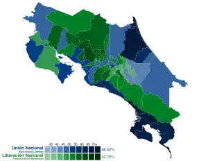 Partido Liberación Nacional (PLN) | 88,893 | 42.53 | -22.05 | 125 | -38 | 263 | -47 | |