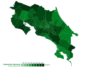 Monge 58.80%      Calderón 33.64%      Echandi 3.84%      Gutiérrez 3.33%      Otros 0.39%