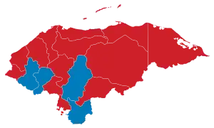 Los niveles de abstencionismo fueron los más altos de la llamada Era Democrática, desde las elecciones de 1982.[20] El partido Liberal ganó en catorce de los dieciocho departamentos de Honduras, mientras que el Partido Nacional ganó en los departamentos más poblados: Francisco Morazán, Choluteca, Intibucá y Lempira.