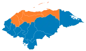 Partido Liberal![]() | Por Honduras, por Nosotros | Luis Zelaya | 344 431 | Válidos: 605 550 Nulos: 39 298 Blancos: 56 013 Total: 700 861 (26.21 %) |