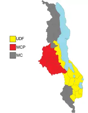 Siete partidos llegaron a las elecciones en una coalición, el Mgwirizano Coalición; el Partido Republicano, el movimiento Progresivo de las Personas, el Movimiento para Cambio Democrático Genuino, el partido de Transformación de las Personas, el Foro de Malawi para Unidad y Desarrollo, el Partido de Unidad Nacional y el Malawi Partido Democrático.