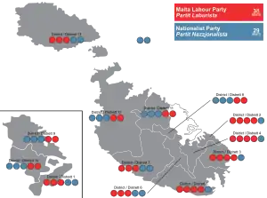 Elecciones generales de Malta de 2022 65+ miembros de la Cámara de Representantes 33+ miembros para obtener la mayoría absoluta | |||||||||||