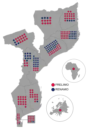 Movimiento Nacionalista Mozambiqueño Partido de Convención Nacional Partido de la Unidad Nacional Frente de Acción Patriótica Partido Popular de Mozambique Frente Unido de Mozambique | |||||||||||