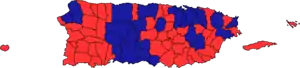 El Partido Nuevo Progresista ganó el control de las Alcaldías de los Municipios de San Juan (Capital de Puerto Rico), Guaynabo, Bayamón, Cataño, Toa Baja, Corozal, Ciales, Manatí, Arecibo, Aguadilla, Moca, Aguada, Guánica, Adjuntas, Utuado, Peñuelas, Ponce, Jayuya, Juana Díaz, Santa Isabel, Villalba, Caguas, San Lorenzo, Naguabo, Fajardo, Carolina, y Trujillo Alto.