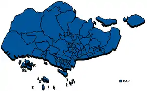 Por cuarta vez consecutiva, el PAP obtuvo todos los escaños. El candidato con mayor porcentaje de votos fue el primer ministro Lee Kuan Yew, estando a punto de romper su propia marca en porcentaje de votos, establecida en 1968.[4]
