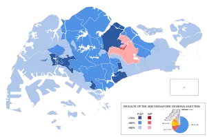 Las elecciones generales de Singapur de 2020 se celebraron el 10 de julio del mencionado año para configurar el 14.º Parlamento,[1] que ejercería sus funciones entre 2020 hasta, a más tardar, 2025. Se realizaron luego de la disolución anticipada de la legislatura anterior el 23 de junio por parte de la presidenta Halimah Yacob por petición del primer ministro Lee Hsien Loong, cuando la convocatoria podría haber tenido lugar a más tardar el 15 de enero de 2021.[2][3][4][5][6][7][8][9] Fueron las decimosextas elecciones generales desde la instauración del sufragio universal. Se realizaron a su vez en el marco de la pandemia global de enfermedad por coronavirus, lo que motivó numerosas restricciones para la realización de los comicios. La nominación de candidatos fue el 30 de junio, por lo que la campaña duró diez días.