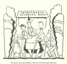 Caricatura en un periódico comunista, que muestra al nuevo gobierno de Hjalmar Branting después de las elecciones