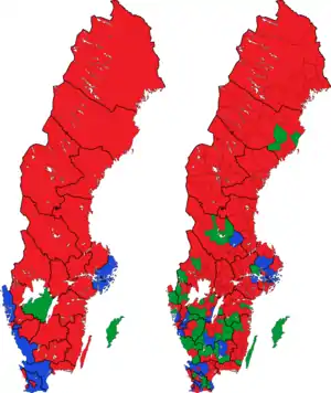 Partido Socialdemócrata (S) | 2,321,826 | 43.21 | 156 | –3 |