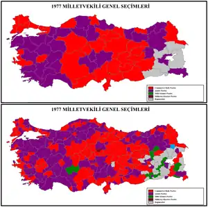 Las elecciones generales se llevaron a cabo en Turquía el 5 de junio de 1977. Las elecciones se llevaron a cabo en medio de la carrera política entre el derechista e islamista moderado Partido de la Justicia (AP), y el izquierdista y secular Partido Republicano del Pueblo (CHP).[1] Con el liderazgo carismático de Bülent Ecevit, el CHP logró vencer a una de las figuras simbólicas de las políticas conservadoras de Turquía, Süleyman Demirel. La participación electoral fue del 72,4%.[1] La victoria del CHP fue el cenit de las victorias electorales de izquierda en Turquía, y debido a la falta de votos de confianza, su gobierno caería en manos del Partido de la Justicia antes de que ocurriera el golpe militar de 1980.