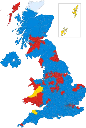 Partido Conservador | Harold Macmillan | 13,750,875 | 49,4 % | 365 | +20 |