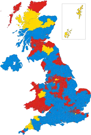 Partido Conservador | Edward Heath | 11.418.455 | 41,9 % | 253 | -52 |