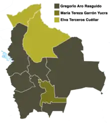 - Departamentales (Chuquisaca, La Paz, Cochabamba, Oruro, Potosí, Tarija, Santa Cruz, Beni, Pando)