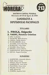 Período | Diputados:10 de diciembre de 2003 a 10 de diciembre de 2007 Senadores: 10 de diciembre de 2003 a 10 de diciembre de 2009 | ||||||||||