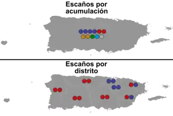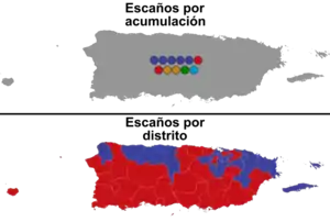 El Partido Nuevo Progresista perdió su mayoría en ambas Cámaras y el Partido Popular Democrático logró alcanzar una mayoría en la Cámara de Representantes mientras logró alcanzar el puesto de primera minoría en el Senado. Este logró aumentar su cantidad de escaños en la Asamblea, sin embargo experimentó un fuerte decrecimiento en el número de votos. por otro lado, el Movimiento Victoria Ciudadana logró elegir sus primeros 4 legisladores (2 a la Cámara y 2 al Senado), mientras el Proyecto Dignidad logró elegir 2 (1 a la Cámara y 1 al Senado). El Partido Independentista Puertorriqueño logró mantener su escaño en la Cámara de Representantes y su escaño en el Senado y el senador independiente José Vargas Vidot logró mantener su escaño.[1]