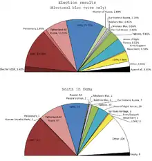 Las elecciones legislativas se celebraron en Rusia el 19 de diciembre de 1999.[1] Estuvieron en juego los 450 escaños de la Duma Estatal. De acuerdo con la ley electoral de 1993, 225 miembros elegidos mediante representación proporcional, mientras que otros 225 miembros fueron elegidos en distritos electorales uninominales. Al igual que en las elecciones anteriores, este sistema resultó en un gran número de partidos que compitieron por los escaños proporcionales, así como en un número significativo de diputados independientes elegidos.