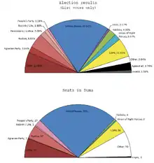 Rusia Unida | 22,776,294 | 37.6 | 120 | 14,123,625 | 23.9 | 103 | 223 | Nuevo |