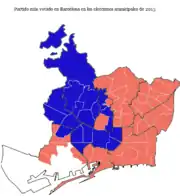 Partido más votado por distrito:      Barcelona en Comú      Convergència i Unió