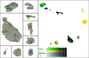 Posicionado tras su aplastante victoria en las elecciones parlamentarias de diciembre, el oficialista Movimiento para la Democracia (MpD) obtuvo un triunfo aplastante con el 53,61% de los votos y el control de ocho de los quince municipios por mayoría absoluta, logrando 53 de los 101 escaños en Cámaras Municipales y 140 de los 247 escaños en Asambleas Municipales.[2] El opositor Partido Africano de la Independencia de Cabo Verde (PAICV), antiguo partido único del país, volvió a ubicarse en segundo lugar, retuvo el municipio de Boavista, se impuso en los dos nuevos distritos de la isla de Fogo (que gobernaba antes de la división) y tomó con éxito el control del municipio de Sal. Los grupos independientes tuvieron un considerable éxito al ganar en los tres municipios restantes, destacando el Movimiento por el Renacimiento de São Vicente.[2]