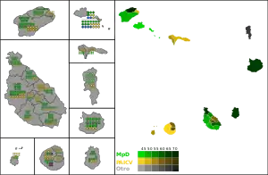 El MpD y sus grupos independientes aliados obtuvieron una holgada victoria con el 50,91% de los votos para camaristas y un 49,87% para asambleístas, sumando un total de 81 miembros de Cámaras y 173 de Asambleas. El PAICV logró el 43,97% y 44,71% de los votos, y sumó 56 camaristas y 165 asambleístas. El MpD logró triunfar en la capital, Praia, hasta entonces bajo control del PAICV, y en los municipios de Boavista, Maio, Porto Novo, Ribeira Grande, Ribeira Grande de Santiago, Santa Catarina, São Domingos, São Miguel, São Vicente y Tarrafal. El PAICV triunfó en Brava, Mosteiros, Paul, Ribeira Brava, Santa Catarina do Fogo, Santa Cruz, São Filipe, São Lourenço dos Órgãos, São Salvador do Mundo y Tarrafal de São Nicolau. En Sal triunfó un Grupo Independiente aliado al MpD. Aunque hubo un bajo nivel de registro electoral, la participación final fue una de las más altas desde la democratización de Cabo Verde, con un 80,55% de los votantes registrados emitiendo sufragio.[1]