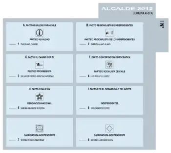 Wikimedia Commons alberga una categoría multimedia sobre Elecciones municipales de Chile de 2012.