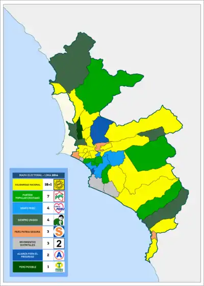 - El Partido Solidaridad Nacional obtiene 18 alcaldías distritales y la de Lima Metropolitana.