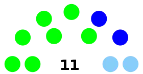 Cargos a elegir | 1 alcalde y 11 concejales | ||||||||||