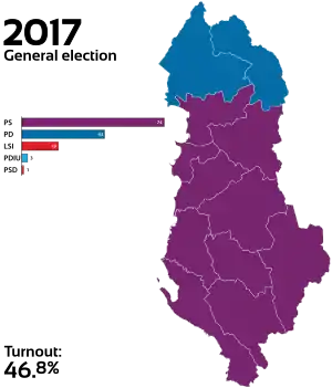 Sin embargo, la participación en estos comicios (del 46,8 %), es el dato de participación más bajo en unas elecciones en el país en este siglo. Siendo también el dato de participación más bajo en democracia desde que en el año 1992 cayese el sistema socialista y diese paso a la actual República de Albania.