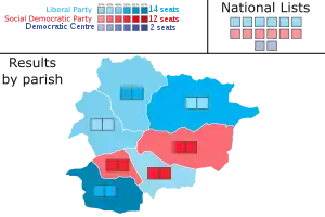 Partido/Coalición | Parroquial | Proporcional | Total | +/- | ||||||||||||
