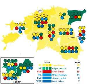 Partido Reformista Estonio | 158.970 | 27,7 | 30 | –3 | |