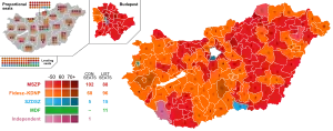La unicameral Asamblea Nacional de 386 miembros (Országgyűlés), el órgano supremo de la autoridad estatal, inicia y aprueba la legislación impulsada por el primer ministro. Un partido tenía que ganar al menos el 5% del voto nacional para formar una facción parlamentaria. La Asamblea Nacional tenía 386 miembros, elegidos para un mandato de cuatro años: 176 miembros en distritos electorales uninominales, 152 por representación proporcional en distritos electorales con múltiples escaños (utilizando listas territoriales) y 58 miembros (usando una lista nacional) para realizar representación proporcional.