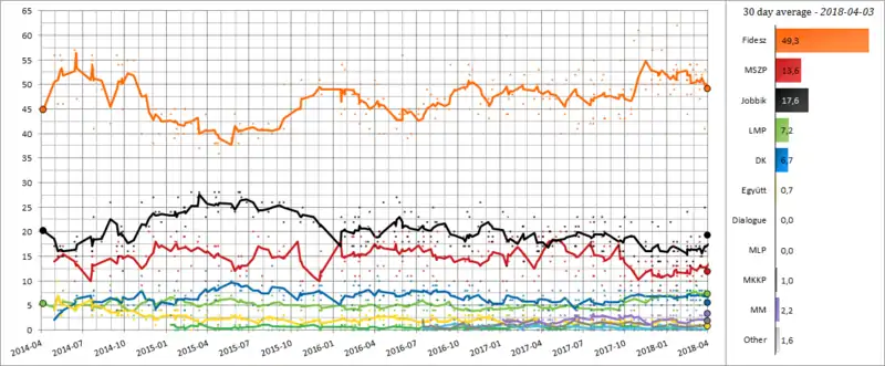La alianza electoral de izquierda Unidad, que no pudo ganar las elecciones nacionales de 2014 después de que sus cinco partidos constituyentes obtuvieran un total de solo 38 escaños, se separó poco después. Sus antiguos partidos miembros (MSZP, Együtt - PM y DK) participaron en las elecciones al Parlamento Europeo de mayo de 2014 de forma individual, mientras que el MLP no participó en las elecciones. Debido a esta fragmentación de la oposición de izquierda, el nacionalista radical Jobbik se convirtió en el segundo partido más grande en una elección nacional por primera vez desde su creación.[7] El PM rompió la naturaleza permanente de su alianza con Együtt el 9 de noviembre de 2014.[8]
