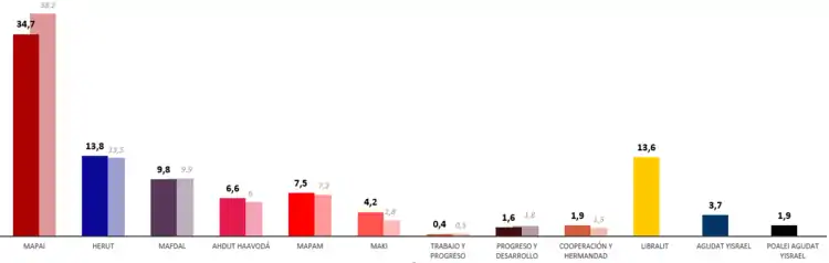 5 Maki 4 Agudat Yisrael 2 Poalei Agudat Yisrael 2 Cooperación y Hermandad 2 Progreso y Desarrollo | ||||||||||
