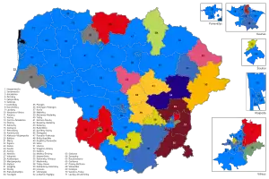Unión del Centro de Lituania (LCS) | 113,333 | 8.67 | 9 | 89,452 | 2.49 | 0 | 52,878 | 1.52 | 4 | 13 | +11 | ||