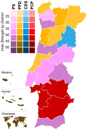 Partido Popular Democrático (PPD) | «Portugal com Sá Carneiro»[19] | «Portugal con Sá Carneiro» | |