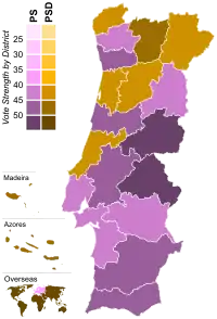 Partido Social Demócrata (PSD) | 2.014.589 | 34,12 | 88 | -47 | ||