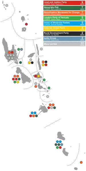Partido de Líderes de Vanuatu | 17,992 | 12.49 | 5 | +4 | |