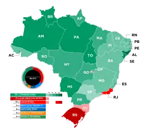 Luiz Inácio Lula da Silva (PT) | José Paulo Bisol (PSB) | 11,622,673 | 17,18% | 31.076.364 | 46,97% |