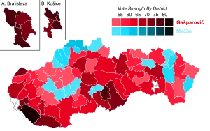 El 17 de abril se realizó el balotaje.[1] Gašparovič derrotó a Mečiar obteniendo el 59.9% de los votos, asumiendo el cargo el 15 de junio.