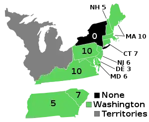 Elecciones presidenciales de Estados Unidos de 1788-1789 69 de 91 votos del Colegio Electoral 37 electores necesarios para ganar | |||||||||||