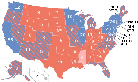 A las 2:40 a. m. (hora del Este) del 9 de noviembre, las cadenas de noticias anunciaron que Pensilvania y Wisconsin (estados en los cuales Hillary Clinton lideraba en la encuestas) daban los últimos 30 electores para definir al ganador a Donald Trump, quien se convirtió en cuadragésimo quinto presidente de los Estados Unidos. Clinton aceptó la derrota ante Trump, quien ganó las elecciones presidenciales de 2016 con 304 votos electorales contra 227 de Clinton.[6] Los estados que le dieron (en contra de la mayoría de los pronósticos) la victoria a Trump fueron, principalmente, los estados industriales de la región de los grandes lagos: Míchigan, Pensilvania y Wisconsin. Además de estos, el candidato republicano también logró imponerse en los dos grandes estados en disputa, o "swing states", de las últimas décadas: Ohio y Florida, y en otros estados "swing" menores como Arizona, Georgia, Iowa y Carolina del Norte. Clinton, por su parte, se hizo con estados disputados como Colorado, Nevada, Virginia y Nuevo Hampshire.