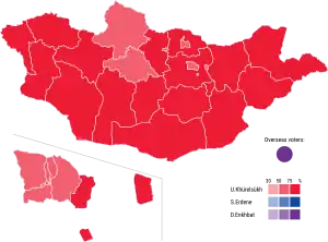 Las elecciones presidenciales se celebraron en Mongolia el 9 de junio de 2021.[1] El resultado fue una victoria para Ukhnaagiin Khürelsükh del Partido del Pueblo de Mongolia, que recibió el 72% de los votos válidos.