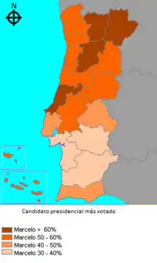Las elecciones a la presidencia de la República Portuguesa se celebraron el 24 de enero de 2016 para elegir al sucesor de Aníbal Cavaco Silva. En esta elección Marcelo Rebelo de Sousa, candidato del Partido Social Demócrata, también apoyado por el CDS-PP y el PPM, gana en la 1º vuelta con el 52% de los votos y ganando en todos los distritos.