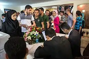 - «Syrians abroad elect their president amid high voter turnout, voting extended until midnight, and one more day in Lebanon». SyriaOnline.sy. Consultado el 8 de junio de 2014.