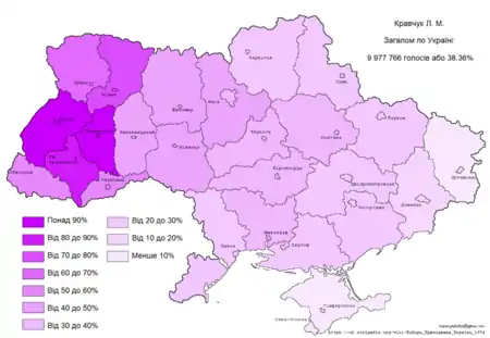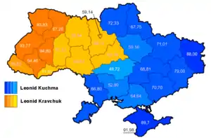 Región | Kuchma | Kravchuk | Resultado nacional | |