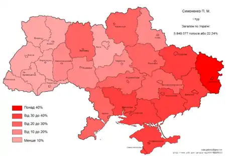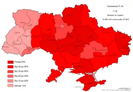 Petro Symonenko | Partido Comunista de Ucrania | 5,849,077 | 23.1 | 10,665,420 | 38.8 |